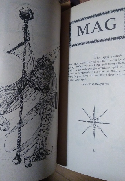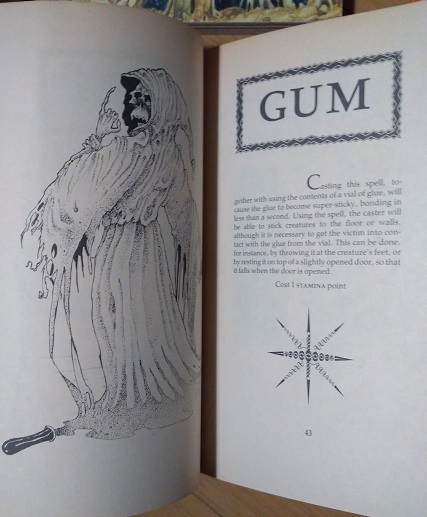 挿絵はジョン・ブランチという人で、暗い絵の感じがとても好きです。写真中、右は魔法の書の挿絵です。